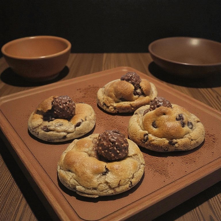 A cookie that tastes just as luxurious as it sounds. Our Ferrero Rocher Cookie combines the rich flavors of creamy chocolate, roasted hazelnuts, and a soft, chewy cookie base. Each bite captures the magic of the classic Ferrero Rocher — with a golden, melt-in-your-mouth texture and a nutty crunch that makes it unforgettable. It’s comfort and elegance baked into one delicious bite.