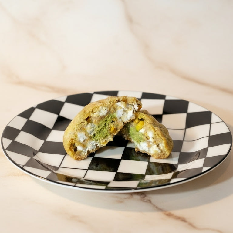 Delicately nutty with a hint of sweetness, our Golden Pistachio Cookie is baked to perfection with buttery dough and crunchy roasted pistachios in every bite. Its soft center and golden edges create a melt-in-your-mouth experience that’s both comforting and elegant. Lightly sweet, perfectly balanced, and full of homemade charm this cookie is a little taste of luxury wrapped in warmth.